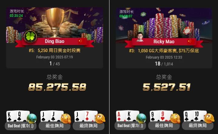 两人均为GGMillions的决赛桌常客,上周才分别拿下第二&第四名佳绩。