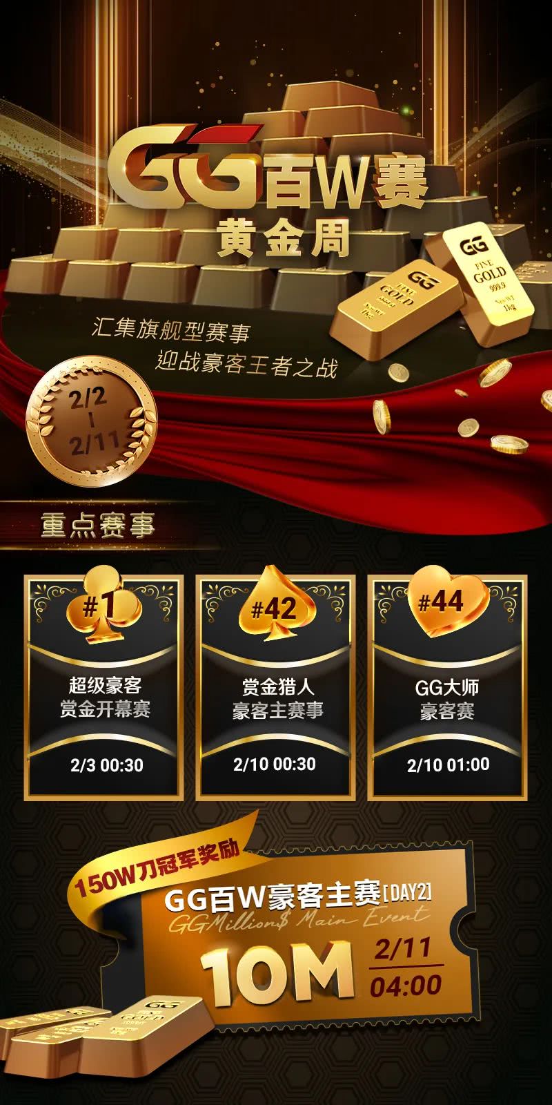 随着APL亚洲扑克联盟杯即将圆满落幕,北京时间2月2日-2月11日,正式迎来“百W赛黄金周”!