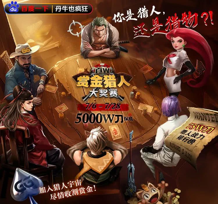 7月6日-7月28日,高达5,000W刀总保底,神秘赏金主赛事5M刀奖池,每日多场Day1进行中,多达10份10W刀赏金等你来抢夺!