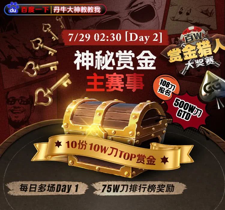 “神秘赏金主赛事”5M刀奖池,每日多场Day1开打中,卫星赛最低1刀起,多达10份100K刀赏金等你来抢夺!