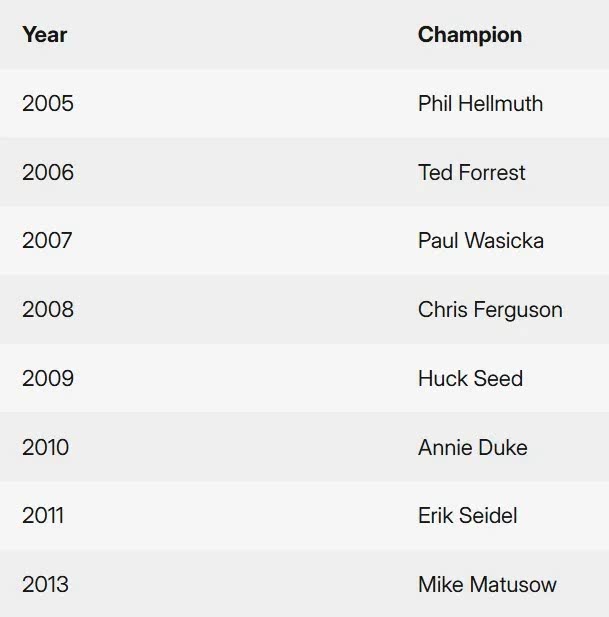 值得一提的是,卫冕冠军Michael "the Mouth" Matusow是否出战尚未确认。他曾在2013年(赛事停办前最后一届)夺冠。
