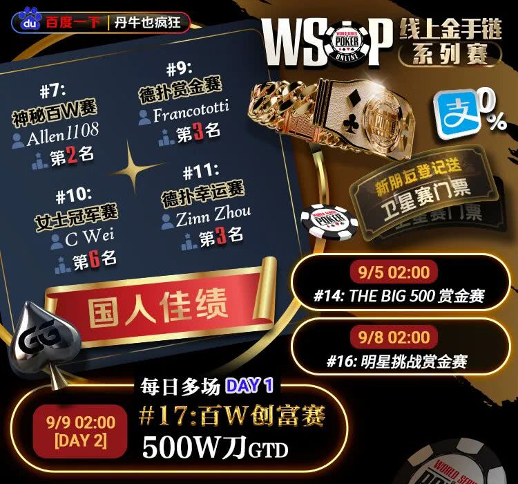 2025年《GGPoker WSOP线上金手链系列赛》已进入白热化阶段,无数国人奋勇拼搏,谁才是你心中的“人气王”?