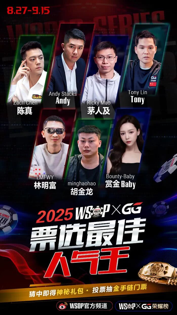 投票结果将在【WSOP官方频道】微博实时更新,并于9月16日揭晓最终榜单与派发竞猜奖励