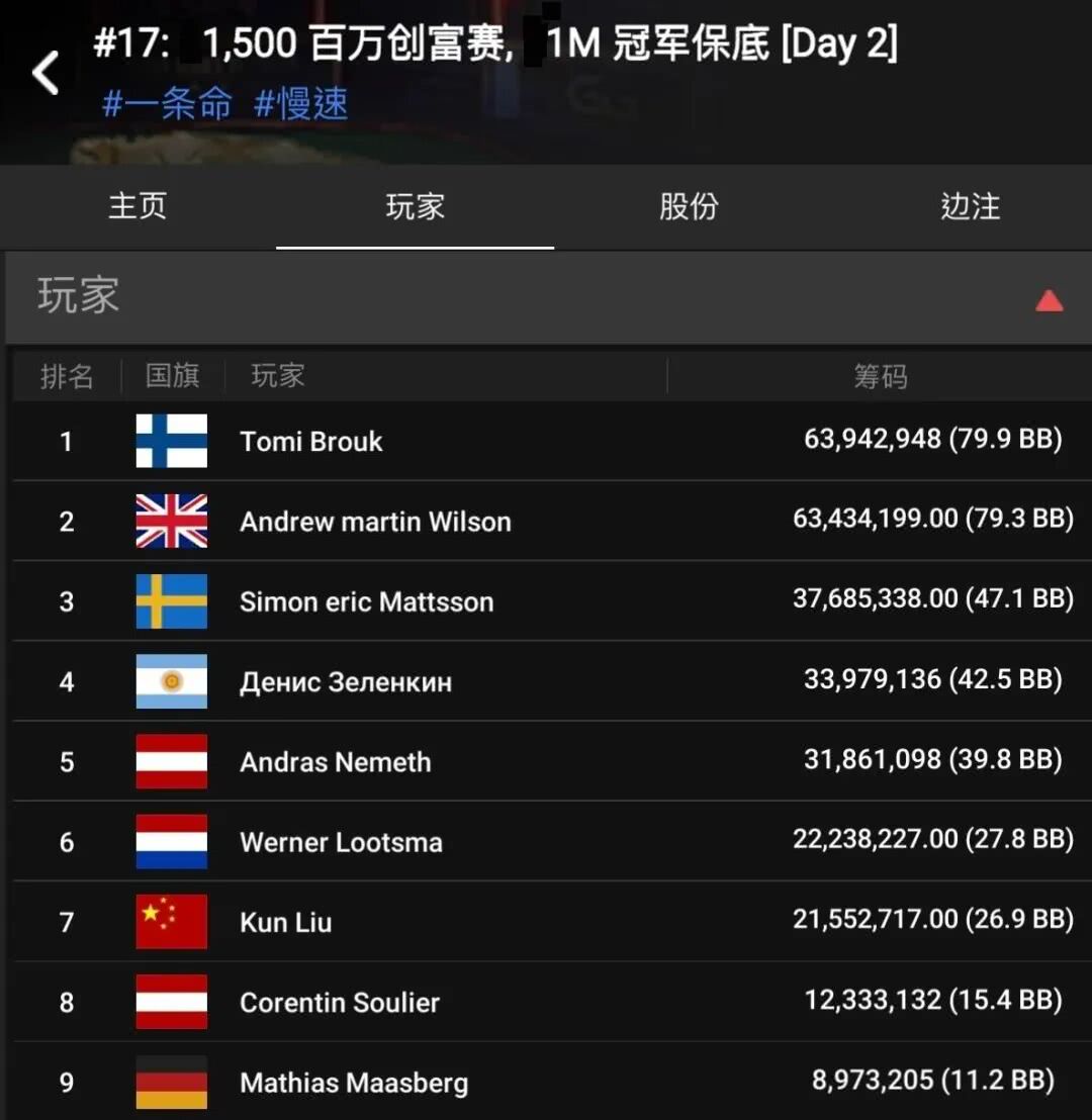 除了Kun Liu外,本届百万创富赛还有多位国人打进Day2: