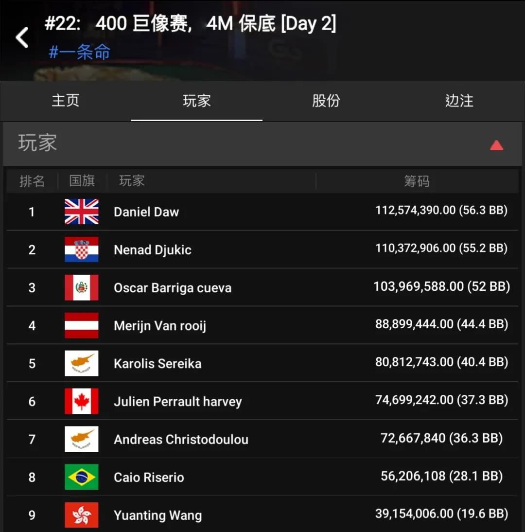 赛事进入到Day2后逐渐白热化,最终决赛桌九强诞生,其中不乏过往的金戒指与金手链得主。