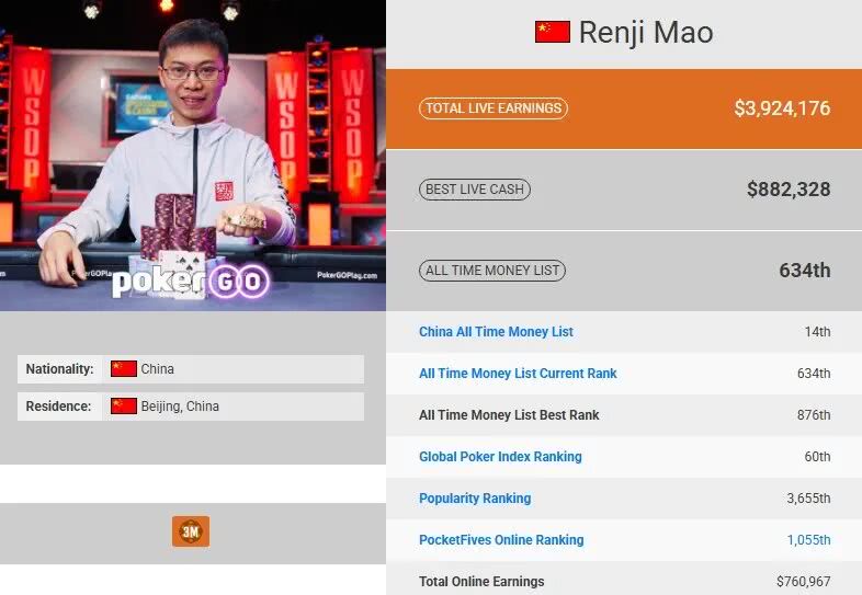 更别提Triton济州站30K 8人桌豪客赛,3月的时候茅人及先拿了个第3名,收下个人职业生涯最高奖励737万刀。