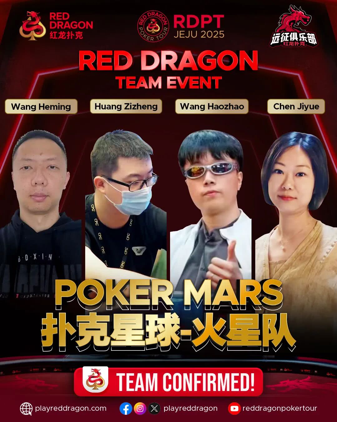 这支由老友组成的战队,藏着扑克圈的宝藏配置:有“中国混合第一人”翁君坐镇稳军心,有APT29项冠军得主陈杰立下20冠flag,还有冠军选手陈安迪、博主卢梓杰注入跨界活力。