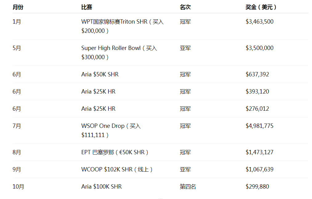 单是7月至10月四个月的时间,就豪取逾1200万美元奖金。
